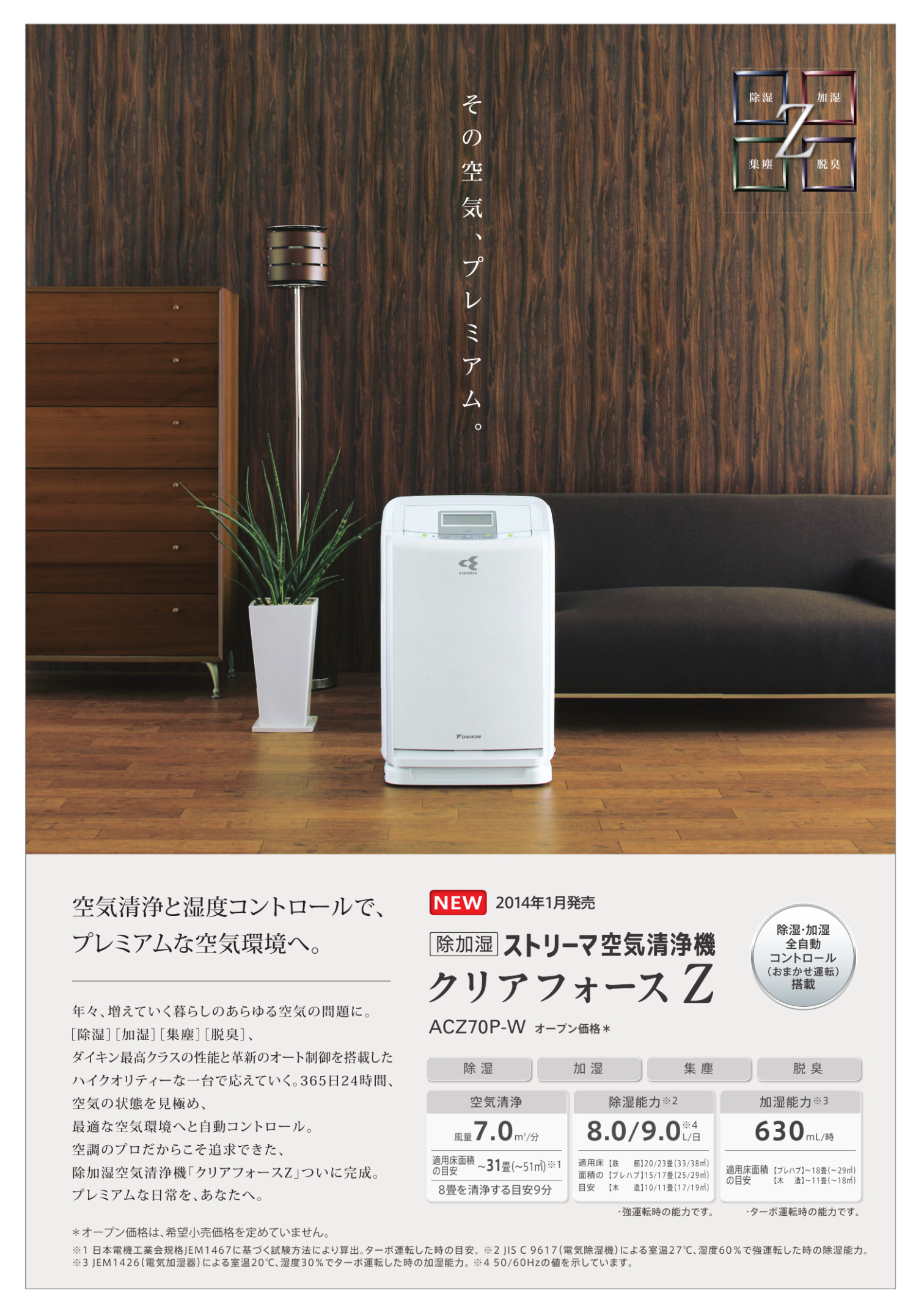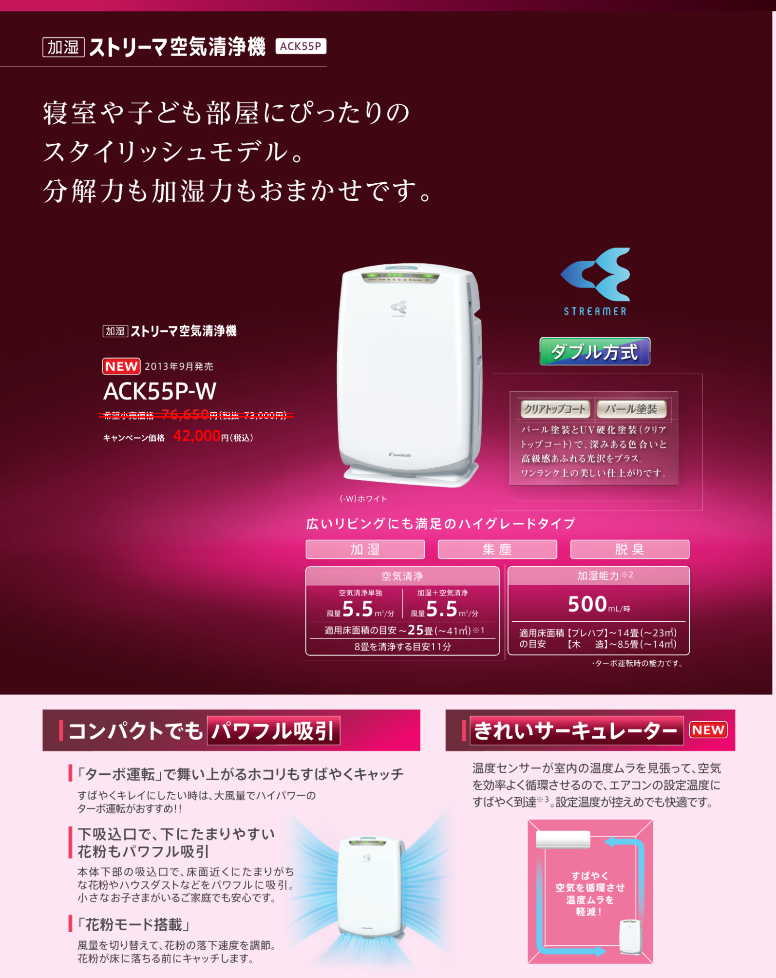 加湿ストリーマ空気清浄器 3タイプ